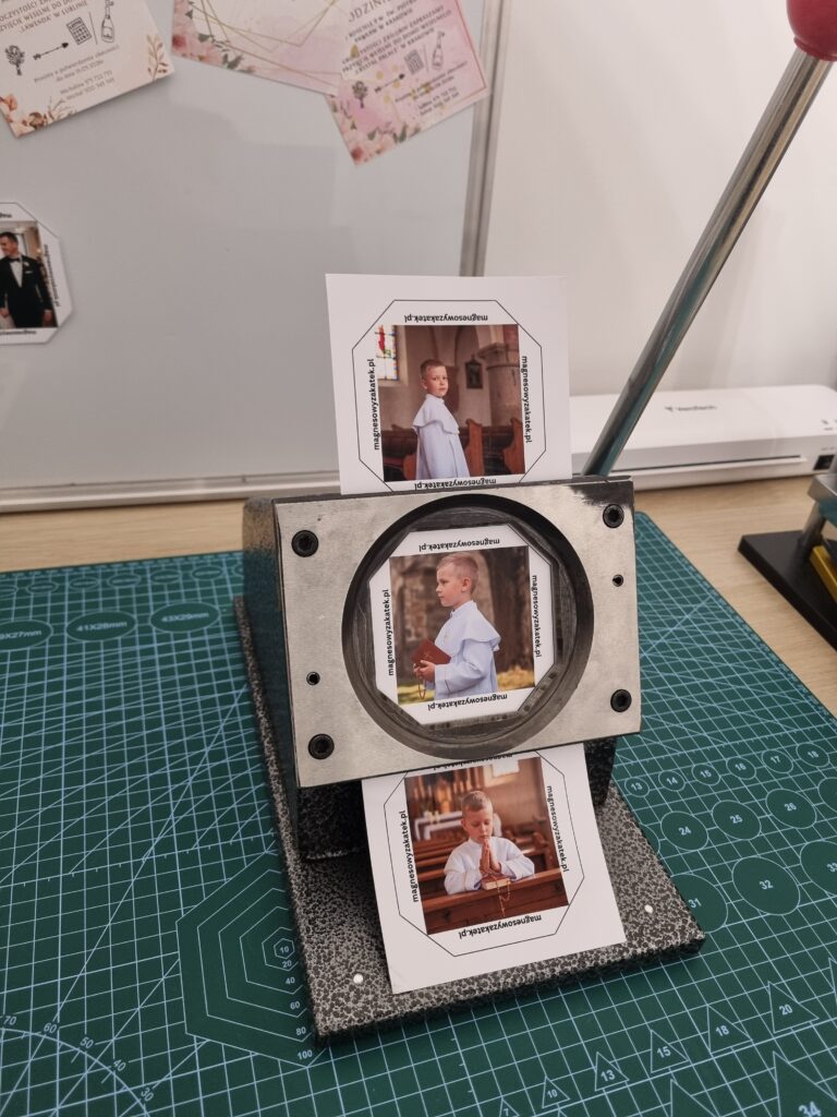 Tak przygotowane zdjęcia trafiają pod gilotynę, gdzie są precyzyjnie przycinane do odpowiedniego formatu.